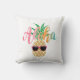 Tropisch, leuk gooi kussen met een schattige, lachende ananas dragen zonnebril met een Aloha begroeting in zomerse strandkleuren (roze, koraal, sinaasappel, aqua blauw). Origineel kunstwerk KL Stock.