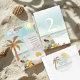 Pure grilligheid, deze strandbruiloft dank u sticker heeft een ontspannen, kustvibe met elementen zoals verdrietig hout, geweven papier en een illustratie van een palmboom en zonmotief. Het gedempte kleurenpalet bevat tinten blauw, groen en zanderig beige, die doen denken aan de oceaan en het strand. Het algemene ontwerp is leuk en romantisch, waardoor het perfect is voor een door kustgeïnspireerde bruiloft.