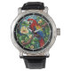 Tropical Canopy Time" - Stained Glass Parrot Horloge