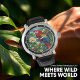 Bring the vibrant allure of the jungle into your home with this stunning decorative wall clock, showcasing a colorful parrot in a captivating stained glass design. This artistic timepiece bursts with vivid hues, depicting the exotic bird perched elegantly on a leafy branch, surrounded by lush botanical elements. It's a gorgeous and unique piece of wildlife art that transforms any wall into a window to a tropical paradise. More than just a clock, its handcrafted feel and intricate design make it an ornamental statement piece for any room, embodying natural beauty and creative flair, adding a touch of jungle-inspired charm to your decor.