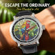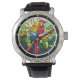 Tropical Kaleidoscope" - Stained Glass Parrot Horloge
