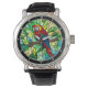 Tropical Kaleidoscope" - Stained Glass Parrot Horloge