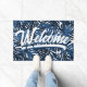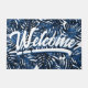 Tropical Leaves Navy Blauw Wit Script Welkom Deurmat