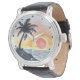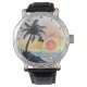 Tropical Sunset Ocean Scene with Palm Trees Horloge