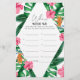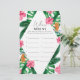 Tropical Palms Waterverf Bruidsdouche uitnodiging. Het design heeft een waterverf boeket van klassiek strandbloemengroen en -waterverven, waaronder blush pink hibiscus, sinaasappel en blauw paradijsvogeltje, groen groen groen en donkergroen palmblad.