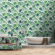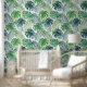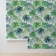 Tropisch Bladerontwerp Behang met aanpasbare achtergrondkleur.
