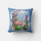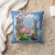 Blauwe marmerpilaren, bochten naar een indoor fantasiepaleis, met stappen die in een watervijver, groen, planten, roze bloemen, flamingos en een ouderwetse rolstoel voor een gastenhuisje of voor een trouwthema lopen