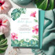 Deze strandbrudal doucheuitnodiging kenmerkt de bruid om de naam te zijn die in een stijlvolle handgeschreven script wordt geplaatst met gebeurtenisdetails in een klassieke laksteengrijze serif doopvont op een scherpe witte achtergrond. Een replica van mijn oorspronkelijke waterverf tropische roze hibiscus bloemen en groene palmbladeren in schaduwen van turquoise green kleurt de voorkant. De uitnodigingskaart keert terug naar een complementaire kleur van de turquoise van zee. Een kustkreet, maar elegante keuze voor zomerluau-brunch en bonbly- of luncheon-vrijgezellenfeesten. Om meer waterverf vrijgezellenfeest ideeën van Victoria grigaliunas te zien bezoek DoTellABelle op Zazzle.