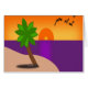 TROPISCH EILAND MET PALMBOOM, SUNSET EN VOGELS
