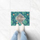 Tropical Foliage Doormat heeft een ontwerp van geïllustreerde tropische bladeren in een naadloos patroon. Deze design omvatten elementen van groen, blauw, rood, sinaasappel en geel, tropische bladeren, palmbladeren, monstera plant en bloemen. Producten bevatten een sjabloon om aan te passen met uw bericht. Klik op personaliseren en verder aanpassen om de achtergrond naar elke kleur te wijzigen.