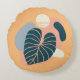Tropisch geel en blauw Abstract rond kussen Dit is de perfecte trendy toevoeging voor uw dagelijkse decorstijl. Dit ontwerp heeft een effen gele achtergrond aan beide zijden. De voorkant is geaccentueerd met een tropisch abstract bladontwerp. Bezoek onze winkel voor het coördineren van accessoires.