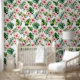 Tropisch groen blad roze Hibiscus bloemen Behang