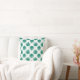 Een schoon en minimalistisch naadloos patroon met gedurfde groene palmbladeren gerangschikt in een herhalend ontwerp. Dit stramien, tegen een heldere witte achtergrond, straalt een tropische en verfrissende sfeer uit, die perfect is om de essentie van natuur op te roepen.