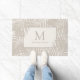 Ons unieke en moderne palmbladpatroon op een gepersonaliseerd monogram doormat in een neutrale beige taupe en bruine tinten zal er geweldig uitzien in elk strandhuis of vakantiehuisdeur.