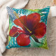 Tropisch Rood Hibiscus Floral Blauwgroen Greenery Kussen