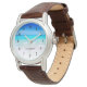 Een aangepaste horloge met een schilderachtig tropisch strand. Een prachtig turquoise zee in de verte en kristalhelder water strelen een zandstrand. Een helderblauwe lucht op de achtergrond. Personaliseer met een naam.
