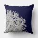 Deze moderne kussens zijn uitgerust met tropisch wit zee koraal op een blauw marineklein en zijn ideaal voor het strandhuis, het strandhuisje, of voor het devies van het zeebekken, kust- of strandthema, of als je in de oceaan leeft. Foto van het koraal en ontwerp © van TK Goforth, alle rechten voorbehouden.