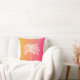 De schaduw van de zomer en de tropische herinneringen met dit kleurrijke palmboomontwerp met een roze en gele zonneachtergrond.