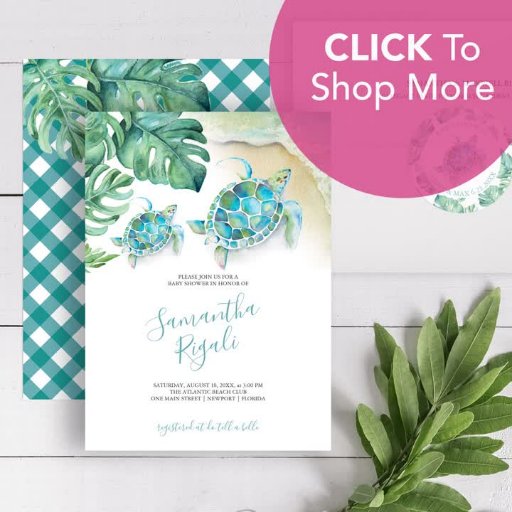 Tropisch onder het zee met de naam dankjewel! Mijn unieke schildpad van het zee van de waterverf staat in schaduwen van turquoise blauw en groen, met "Dank u" geplaatst in roze handgeschreven manuscripttype. Ruimte voor personalisatie of voornaam monogram. Dit kleurrijke ontwerp maakt een geweldig kinder geschenk of kinder dankjewel. Ga naar www.zazzle.com/dotellabelle voor een bijpassend baby shower op kantoor.