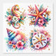 roze, blauw en gouden zanddollar, zeesterren, zeeschelp tropische oceanische kust thema waterverf stijl ai art.