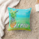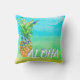 Een topisch strandparadijs in kleuren van gouden zand, aqua en zee groen water is de achtergrond van dit trendy ananassenontwerp. Onderaan staat het woord "Aloha", dat gepersonaliseerd kan worden. Maak je huisdecor of woonruimte in de open lucht helder. Ontworpen door kunstenaar © Susan Coffey