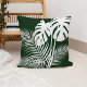 Voeg een stukje klasse toe aan je decor met deze prachtige tropische bladeren die een kussen met palmschijfjes en filodendronbladeren in wit werpen op een donkergroene achtergrond voor een modern uiterlijk. Beschikbaar in extra kleuren.