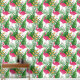 Tropische bladeren, bloemen, roze flamingo's patro behang
