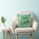Een prachtig huisdecor (binnen- of buitenmateriaal beschikbaar) van een tropisch blad met een kussen in groene blauwgroen schoppen.