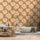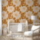 bloem- en bladpatroonschil en stokbehang om uw huis of appartementsinrichting te verheffen. Wit met bladeren en een lichte karamelachtergrond.