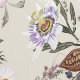 "Tropical Floral Symphony" is een levendig en ingewikkeld patroon dat een scala aan tropische bloemen en bladeren laat zien, minutieus geïllustreerd met rijke details. Het ontwerp heeft een harmonieuze mix van kleuren, met gedurfde tinten van paarse, koraal en crème tegen een zacht beige achtergrond. De opname van exotische elementen zoals passiebloemen en cacaopoeden voegt diepte en een vleugje van het onverwachte toe, waardoor een dynamische en weelderige compositie ontstaat die de schoonheid van de tropische flora viert.