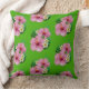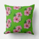 Geef een tropische atmosfeer aan elke kamer met deze kleurrijke decoratieve kussen. Het bevat gele witte loodgieterijbloemen, twee roze hibiscus en groene tropische palmbladeringen in een herhalend bewerkbaar patroon op een transparante achtergrond (groen gebruikt in het monster).
