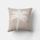 Tropische elegante taupe herringbone en witte palmboom silhouette werpen kussen.
