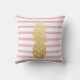 Tropische gouden anananas | Roze strips-patroon Kussen