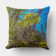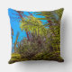 Het originele kunstwerk van ZoeSPEAK op dit Sierkussen, gemaakt van een originele foto, viert de nieuwe groei van alle tropische planten in de dennen bossen gestript door een orkaan. Achter het groen kunnen we de boomstammen zien zonder hun takken, silhouetten tegen een tropische blauwe hemel.