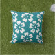 Een buitenkussen met een prachtige mix van levendige kleuren en exotische elegantie. Dit kussen, versierd met witte tropische hibiscusbloemen op een achtergrond van verfrissende turkoois, brengt de geest van een zongekust paradijs direct naar uw patio-ruimte.