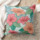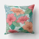 Helder gekleurde hibiscusbloemen poppen tegen groen getint gebladerte op dit tropische gebladerte met een patroon van gooi kussen.