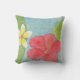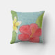 Hibiscus en plumeria bloemen op deze gooiende kussen.