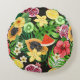 Tropische mix-fruit, bloemen en bladeren op zwart rond kussen