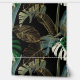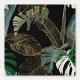 Tropische nacht palm, banaan, plant, gouden bladeren, bloemige naadloze rand zwarte achtergrond. Exotisch donker oerwoud behang.