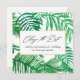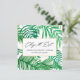 Elegante kalligrafie met chic waterverf tropische palmenbladeren veranderen de datum van het uitstel van het huwelijk aankondiging. Deze mooie aankondiging is een eenvoudige manier om uw genodigde gasten te laten weten dat de datum van uw huwelijk wordt verzet als gevolg van onvoorziene omstandigheden.