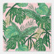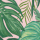 Weelderige tropische palmbladeren op een roze achtergrond. Voor een zomerse vibe.