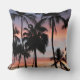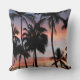 Deze kussen bevatten een foto van tropische palmbomen met een droomroze zonsondergang op de achtergrond, perfect voor een natuur liefhebber of een tropische vakantiewoning!