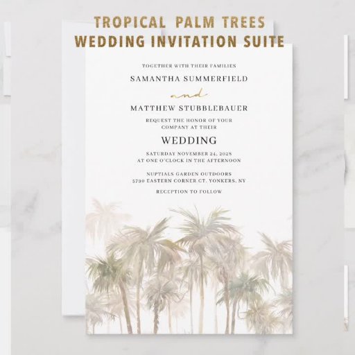 Palm Trees Modern Tropical Wedding SuiteOntworpen door S A Holmes
