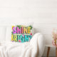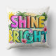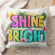 Een levendig en vrolijk kussenontwerp met de uitdrukking "Shine Bright" omringd door tropische elementen zoals palmbomen en hibiscusbloemen. De gedurfde typografie en felle kleuren creëer hebben een positieve en energieke uitstraling, perfect voor zomerse vibes.