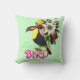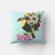 Tropische vogelpiloot. stijl gooi een kussen met volledig aanpasbare neonkleuren met tekst "Tropische vogel", kleurrijke bloemen en een aanraakbare vogel. Een mooie, stijlvolle, tropische vogelbloemenontwerpcadeau!