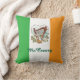 Dit leuke vierkant werpkussen heeft een Iers thema met een St Patrick's Day-kaart afbeelding van een harp en shamrocks, met een trotse Ierse banner op een vlagachtergrond. Het is een perfect cadeau voor de Ierse liefhebber in je leven. Pas het aan met uw familienaam met de bewerkingstool in de aanbieding om het ontwerp te personaliseren.