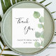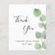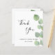 Een bedankkaart voor een trouwfeest. Een chic witte achtergrond versierd met eucalyptusgroen. Op de voorkant grote zwarte handgeschreven letters en de tekst: Bedankt, jouw en een datum. Achterkant: Personaliseer en voeg je bedankbrief en naam toe.