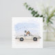 Trouwkaart bruidspaar in vintage Fiat 850 spider