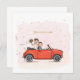 Uitnodigingskaart bruiloft met unieke illustratie van bruidspaar in een rode mini cabrio in een mediterrane sfeer