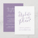 Update van het plan trouwannuleringkaart is onderdeel van de bijpassende eenvoudige typografische hart paars grijs witte trouwset. Ideaal om te gebruiken als trouwinformatiekaart om uw gasten te informeren over een trouw- of evenementannulering of om de datum te wijzigen. Andere kleuropties zijn beschikbaar, deze versie wordt geleverd met enveloppen. Origineel ontwerp van Sarah Trett voor www.mylittleedenweddings.com op Zazzle.